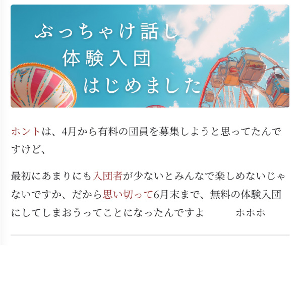 一部、団員の体験談も含まれます